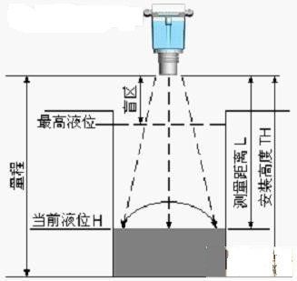 儀表量程指儀表能夠測量的距離,安裝高度TH應(yīng)小于量程。