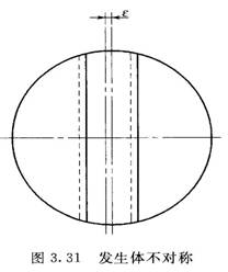 造成發(fā)生體不對(duì)稱的原因是發(fā)生體加工不對(duì)稱和表體加工的不對(duì)稱(圖3.31)。這種不對(duì)稱對(duì)儀表性能的影響主要表現(xiàn)在高流速區(qū)。