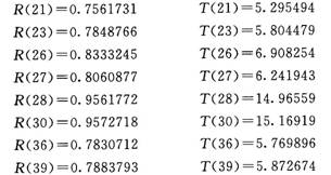各自變量的偏相關(guān)系數(shù)R及回歸系數(shù)T的值如下。