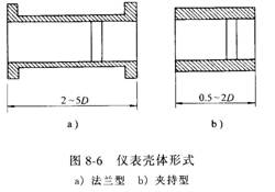可以分成法蘭連接型(法蘭型)和法蘭夾裝型(夾裝型或夾持型)兩類,其儀表表體分別如圖8-6a和b所示。