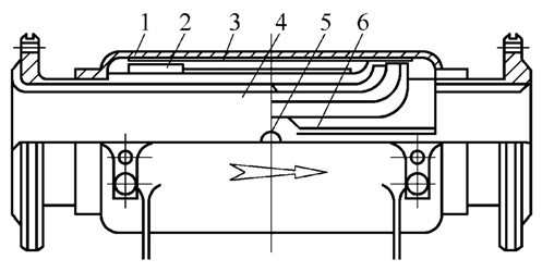 電磁流量傳感器由測(cè)量管,勵(lì)磁系統(tǒng)(勵(lì)磁線圈、磁軛等)、電極,內(nèi)襯和外殼等組成,如圖所示。