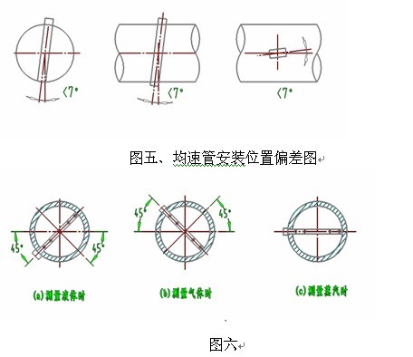 其他類型的傳感器是將其檢測桿插入工藝管道中,安裝時除了總壓孔應正對流速方向外,必須保證傳感器檢測桿與工藝管道的軸線垂直,其允許的位置角壓偏差如圖五所示。