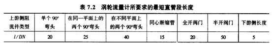 傳感器應(yīng)安裝在便于維修,管道無振動(dòng)、無強(qiáng)電磁干擾與熱輻射影響的場(chǎng)所。液體IUF的典型安裝管路系統(tǒng)如圖7.15所示。圖中各部分的配置可視被測(cè)對(duì)象情況而定,并不一定全部都需要。TUF對(duì)管道內(nèi)流速分布畸變及旋轉(zhuǎn)流是敏感的,進(jìn)人傳感器應(yīng)為充分發(fā)展管流,因此要根據(jù)傳感器上游側(cè)阻流件類型配備必要的直管段或流動(dòng)調(diào)整器,如表7.2所示。若上游側(cè)阻流件情況不明確,一般推薦上游直管段長度不小于20D,下游直管段長度不小于5D,如安裝空間不能滿足上述要求,可在阻流件與傳感器之間安裝流動(dòng)調(diào)整器外時(shí),應(yīng)有避直射陽光和防雨淋的措施。