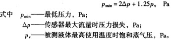 被測(cè)流體若為易氣化的液體,為防止發(fā)生氣穴,影響測(cè)量精確度和使用期限,傳感器的出口端壓力應(yīng)高于式(7.7)計(jì)算的最低壓力Pmin