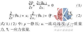 連續(xù)性方程與動(dòng)量方程[13,14]: