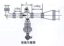 <1>流量計(jì)與管路的連接為法蘭連接。法蘭規(guī)格執(zhí)行GB42161.5-84《管路附件法蘭類型》。 <2>流量計(jì)必須安裝在一段水平直管線上,其指示器必須位于管線之下,前后直段管長度不少與示意圖標(biāo)注的要求。另外蒸汽必須按本體殼上箭頭指示方向流入。 |